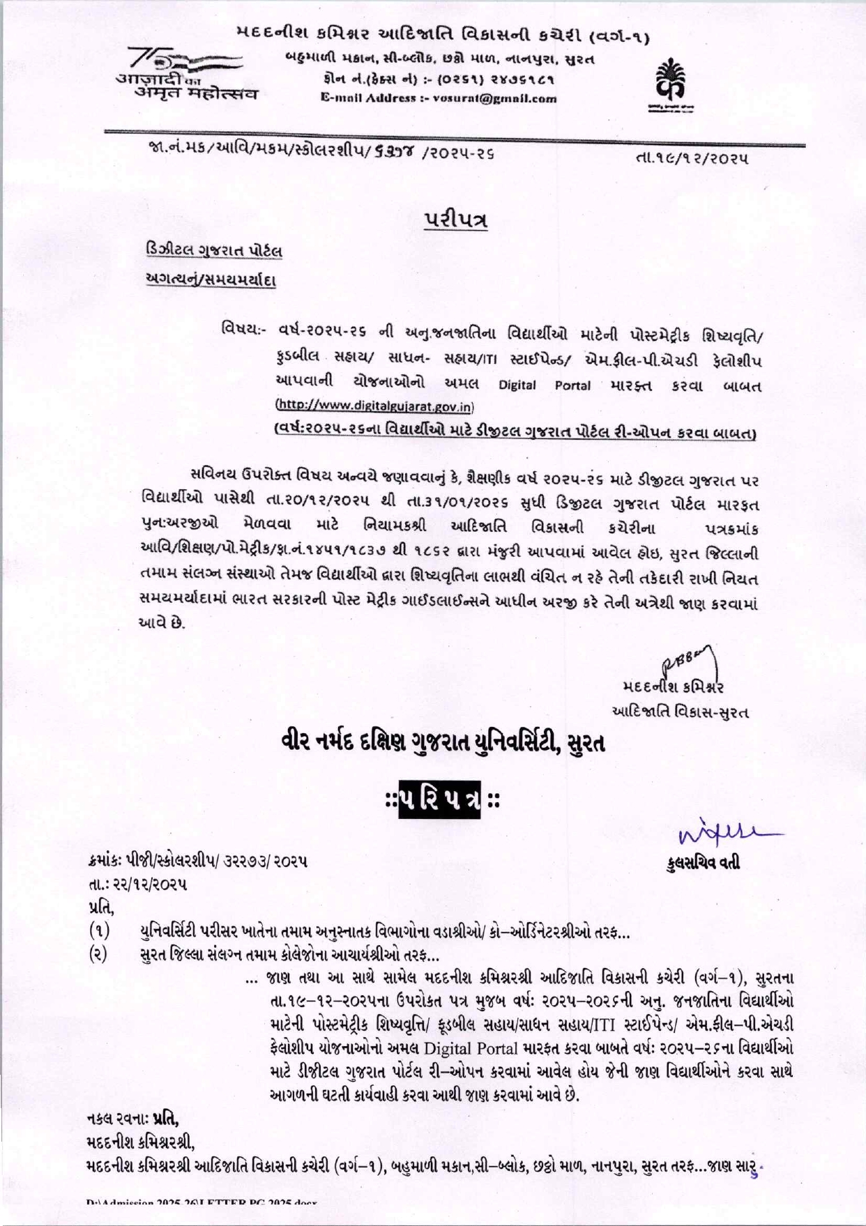 વર્ષ:૨૦૨૫-૨૦૨૬ ના વિદ્યાર્થીઓ માટે ડીજીટલ ગુજરાત પોર્ટલ રી-ઓપન કરવા બાબત