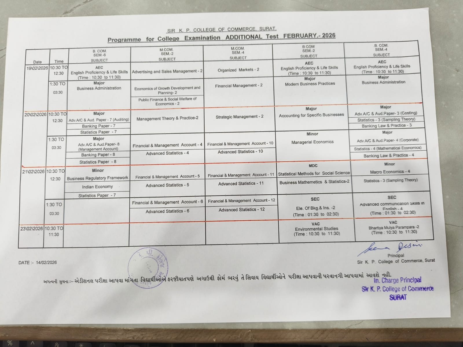 જે વિદ્યાર્થીએ ADDITIONAL INTERNAL EXAM આપવાની છે એ TIME TABLEમાં ફેરફાર કરેલ છે જેથી ફરી એકવાર નીચે મુજબ આપેલ TIME TABLE જોઈ પરીક્ષા આપવા વિનંતી.