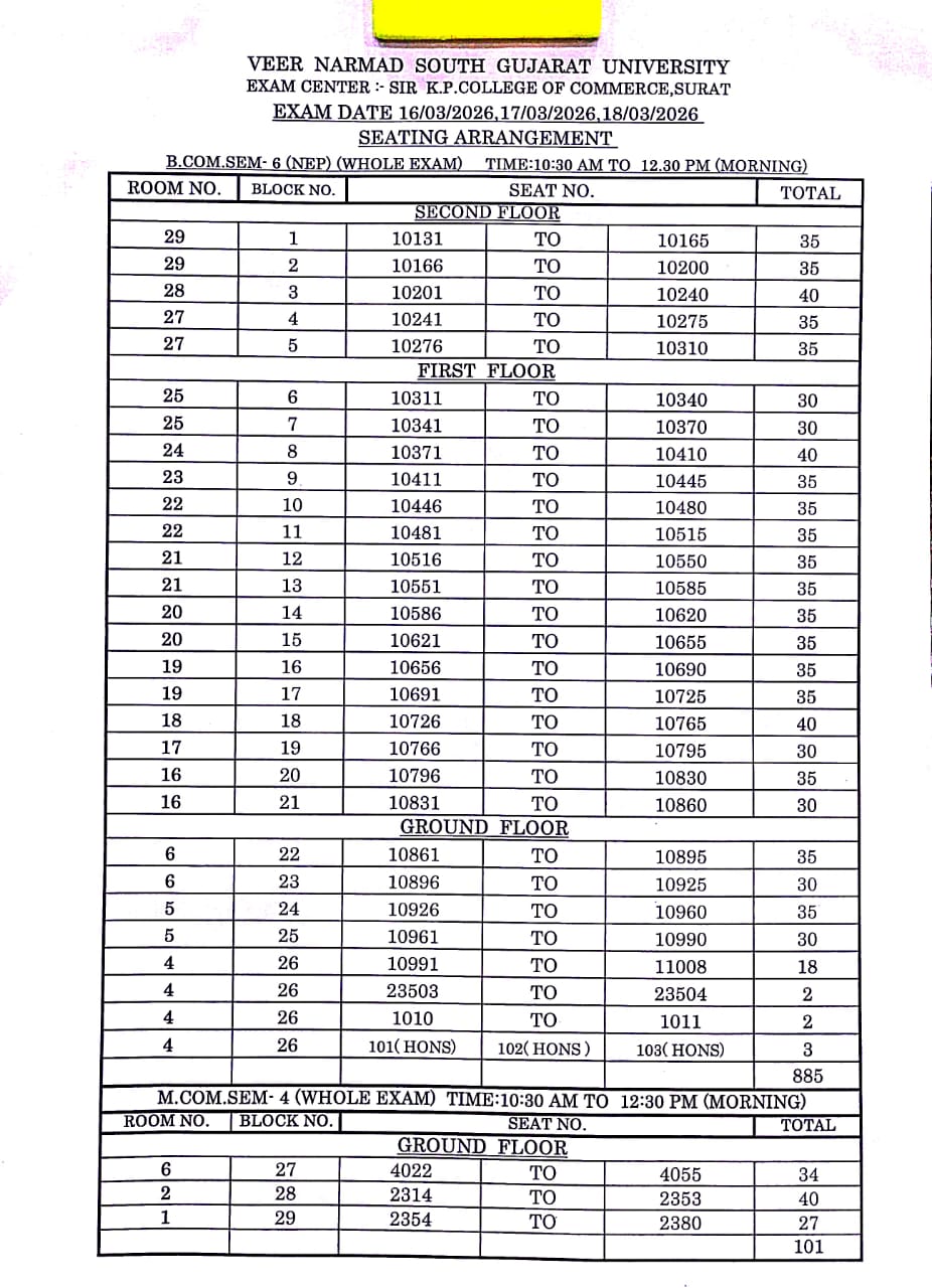 EXAM SEATING ARRANGEMENT FOR T.Y.B.COM SEM-6 NEP & M.COM SEM-4