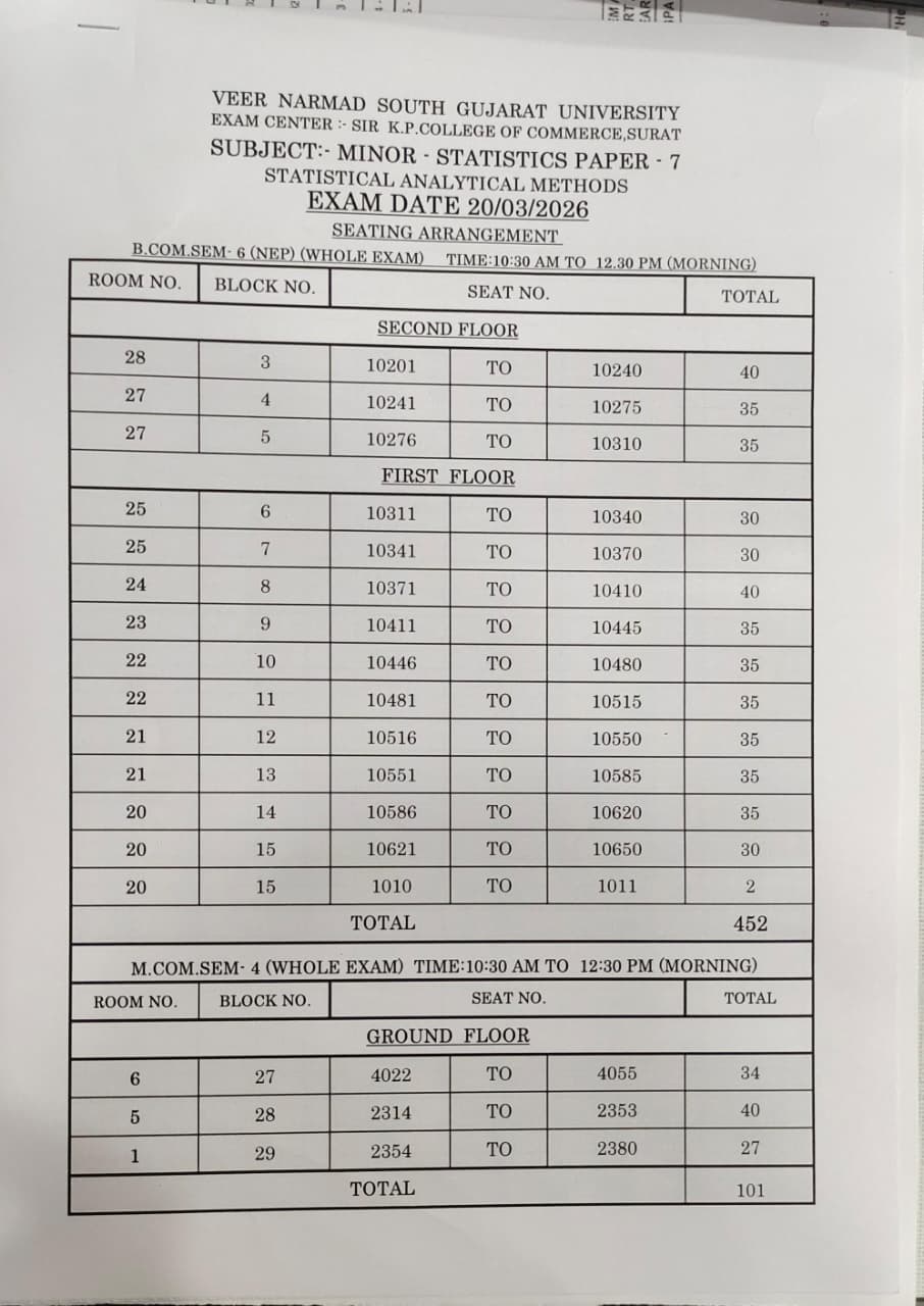 MINOR:-STAT-7 વિષય રાખનાર દરેક વિધાર્થીઓએ નોંધ લેવા વિનંતી છે.