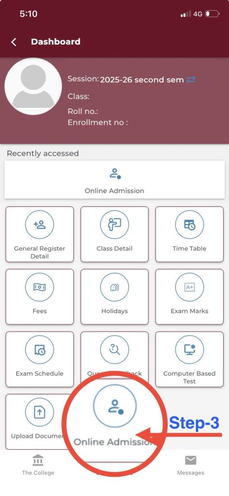 તારીખ ૦૧/૦૪/૨૦૨૬ થી ૧૦/૦૪/૨૦૨૬ સુધી ઓન લાઈન કૉલેજ એપ્લીકેશન માં જઈ નીચે જણાવેલ