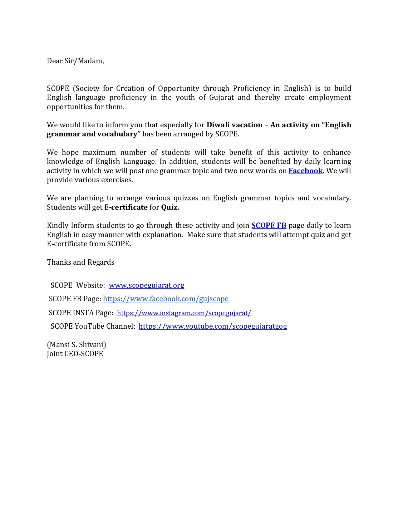 Diwali vacation – An activity on “English grammar and vocabulary”