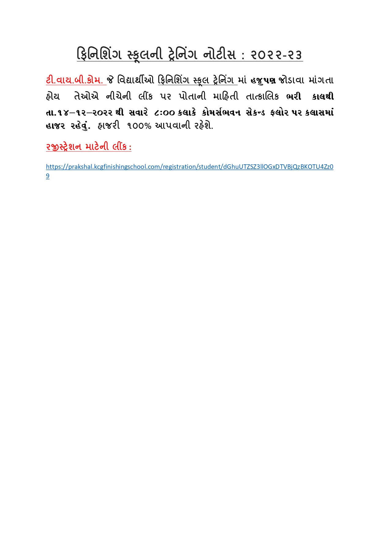 ફિનિશિંગ સ્કૂલ ટ્રેનિગ નોટીસ : ૨૦૨૨-૨૦૨૩ Dec 13, 2022 https://prakshal.kcgfinishingschool.com/registration/student/dGhuUTZSZ3llOGxDTVBjQzBKOTU4Zz09