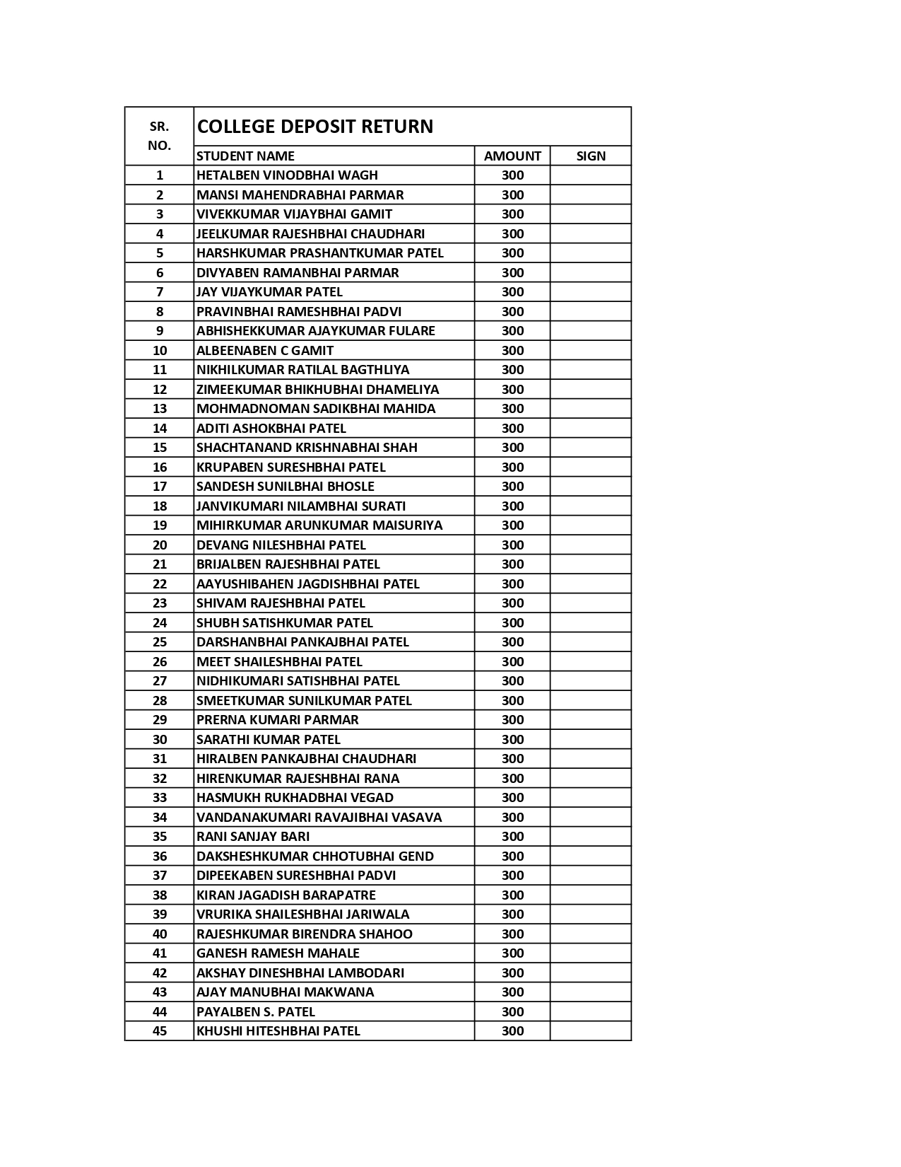 ડિપોઝીટ માટે સૂચના :- ડિપોઝિટ લેવા આવનાર વિદ્યાર્થી એ પોતાના આઈ.ડી પ્રૂફની ઝેરોક્ષ કોપી ફરજીયાત લાવવાની રહેશે. સમય:- સવારે 11.30 થી 1 Dec 22, 2022 ડિપોઝિટ લેવા આવનાર વિદ્યાર્થી એ પોતાના આઈ.ડી પ્રૂફની ઝેરોક્ષ કોપી ફરજીયાત લાવવાની રહેશે. તારીખ : ૨૩/૧૧ /૨૦૨૨ થી ૨૪/૧૧/૨૦૨૨ સમય:- સવારે ૧૧ .૦૦ થી ૧૨ દરેક વિદ્યાર્થીઓએ લીસ્ટમાં નામ અને ક્રમ નંબર જોય ને આવવું.