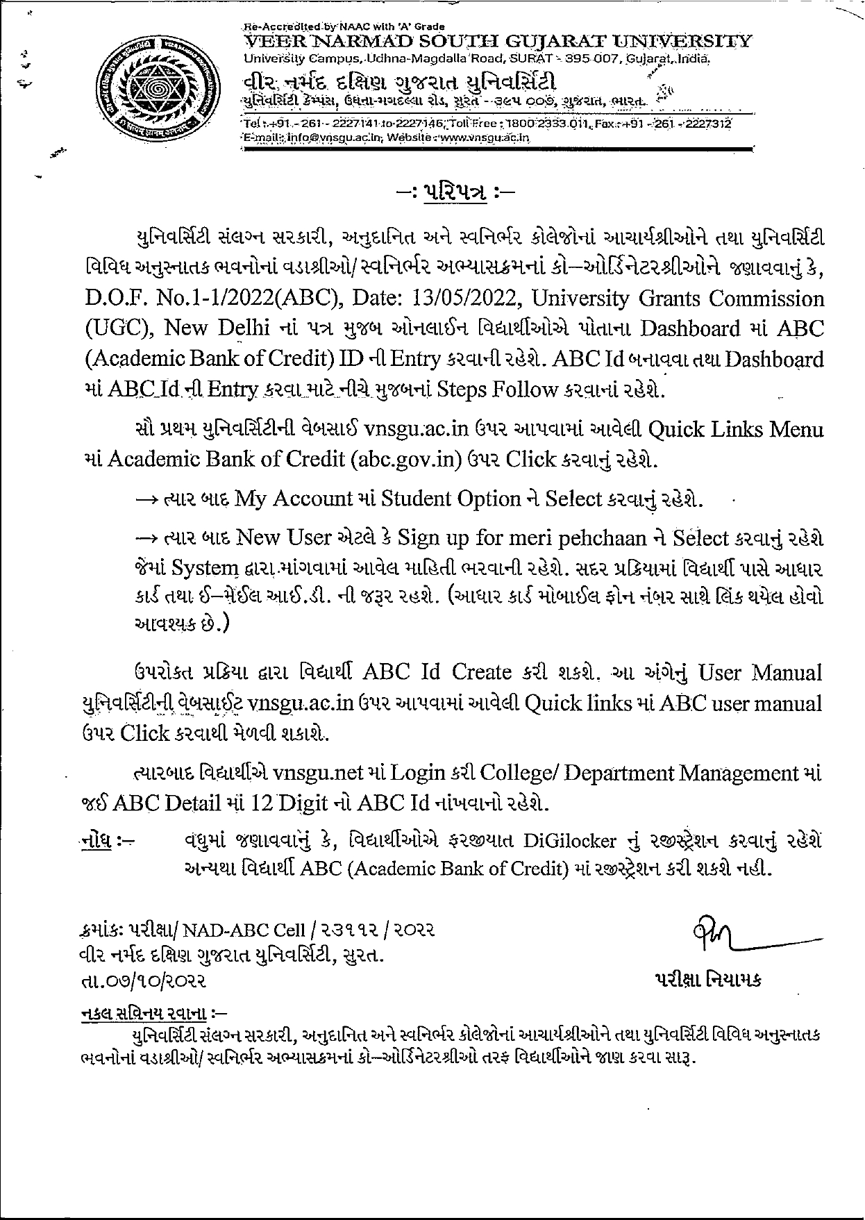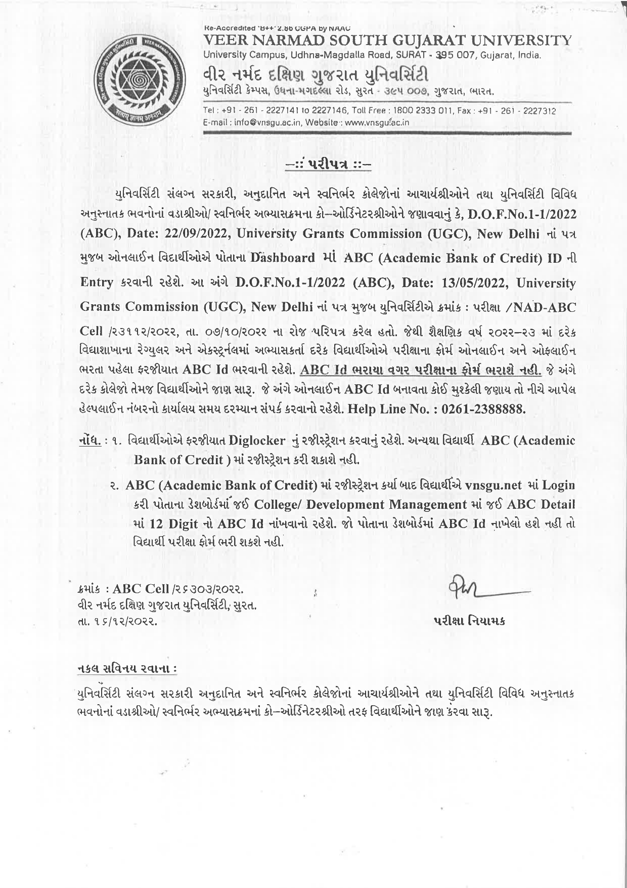 All students must be registered (બધા વિદ્યાર્થીઓ ફરજિયાત રેજિટ્રેશન કરવાનું છે. ) ACADEMIC BANK OF CREDITS Dec 29, 2022