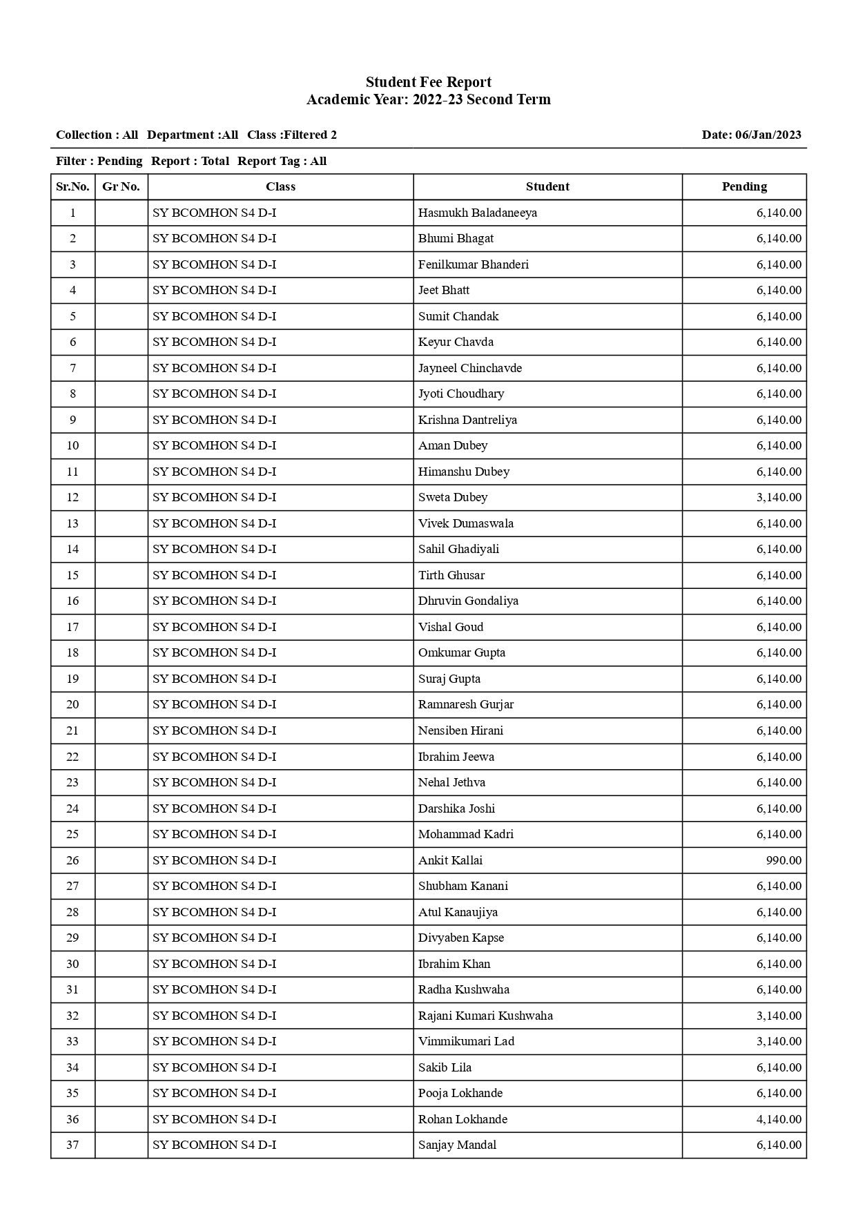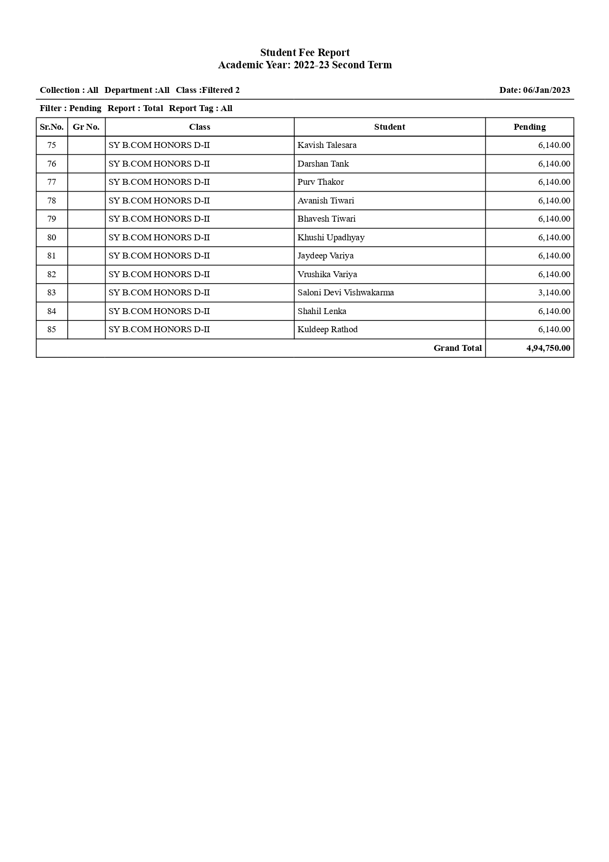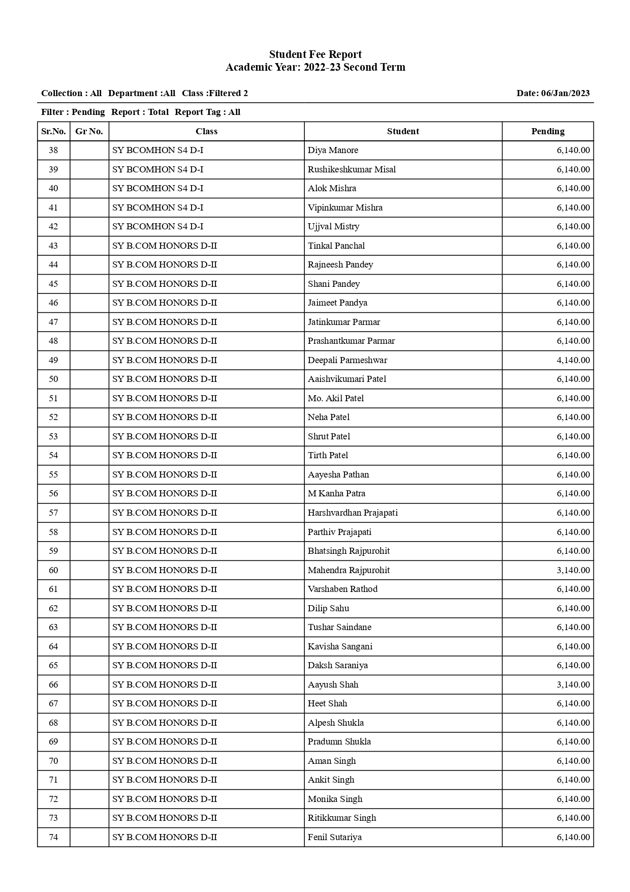 S.Y.B.COM. HONORS SEM-IV(List of fee Pending students.)