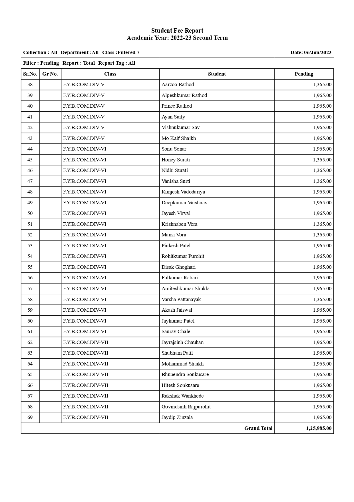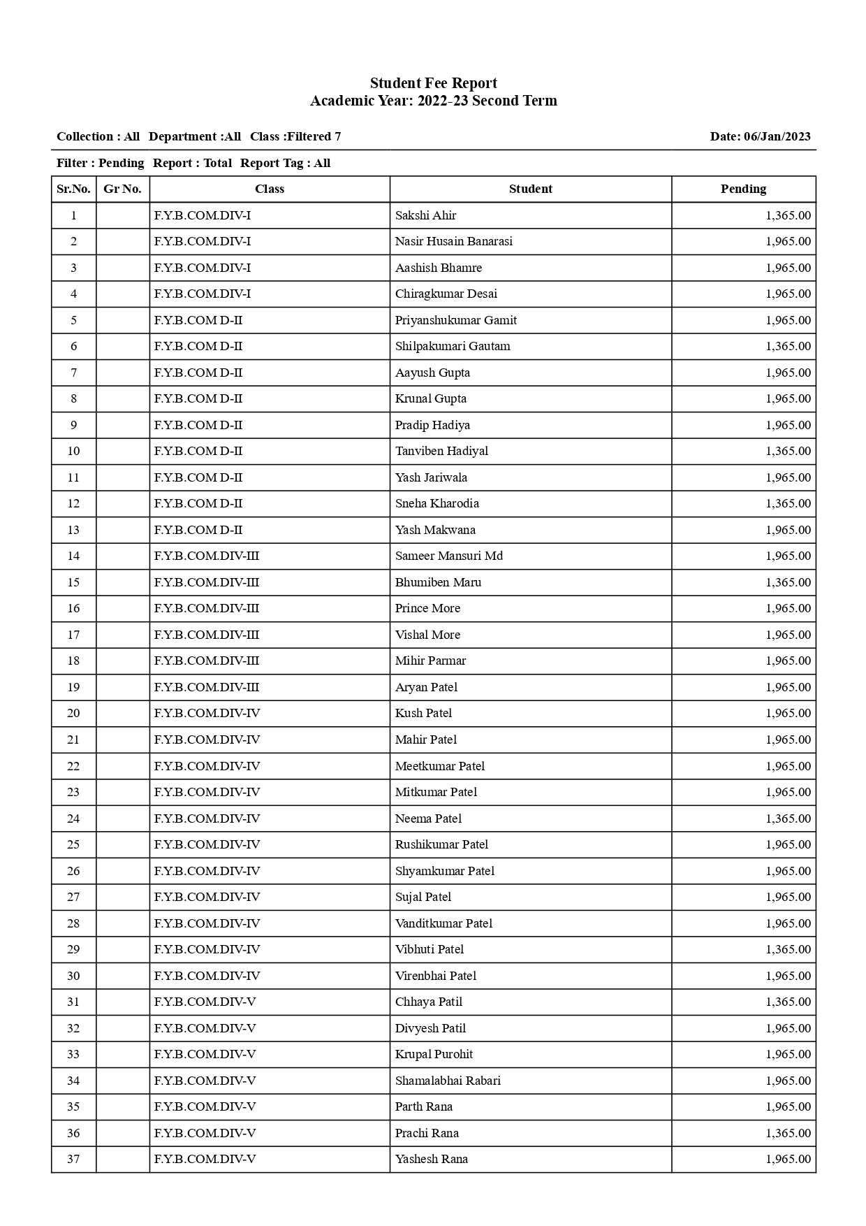 F.Y.B.COM. SEM-II ફી બાકી વિદ્યાર્થી ની યાદી. તાત્કાલિક ફી ભરવાની રહેશે.