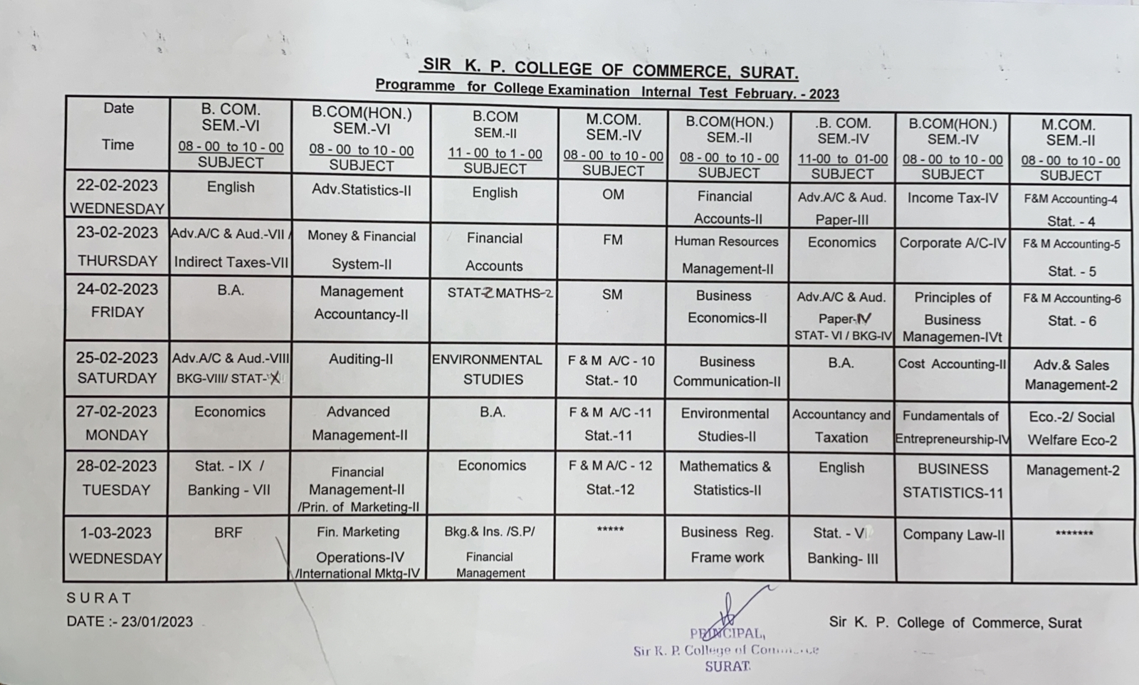INTERNAL EXAM TAIM TABLE FEB 2023