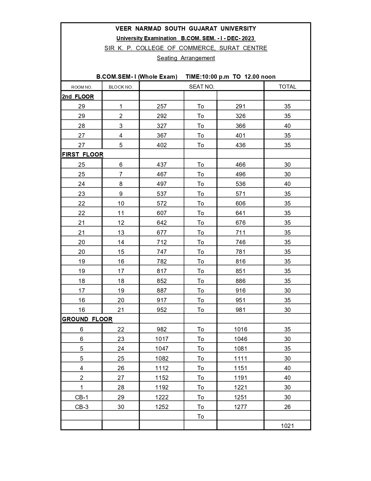 University Examination Seating Arrangement B. Com. Sem-I(NCF-NEP) December 2023