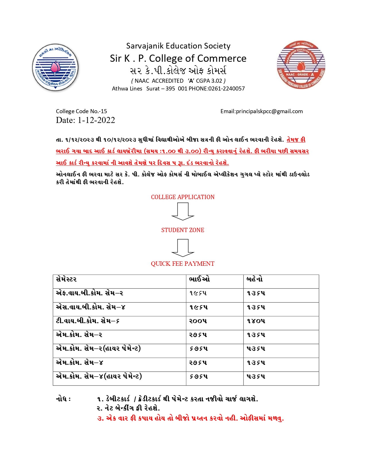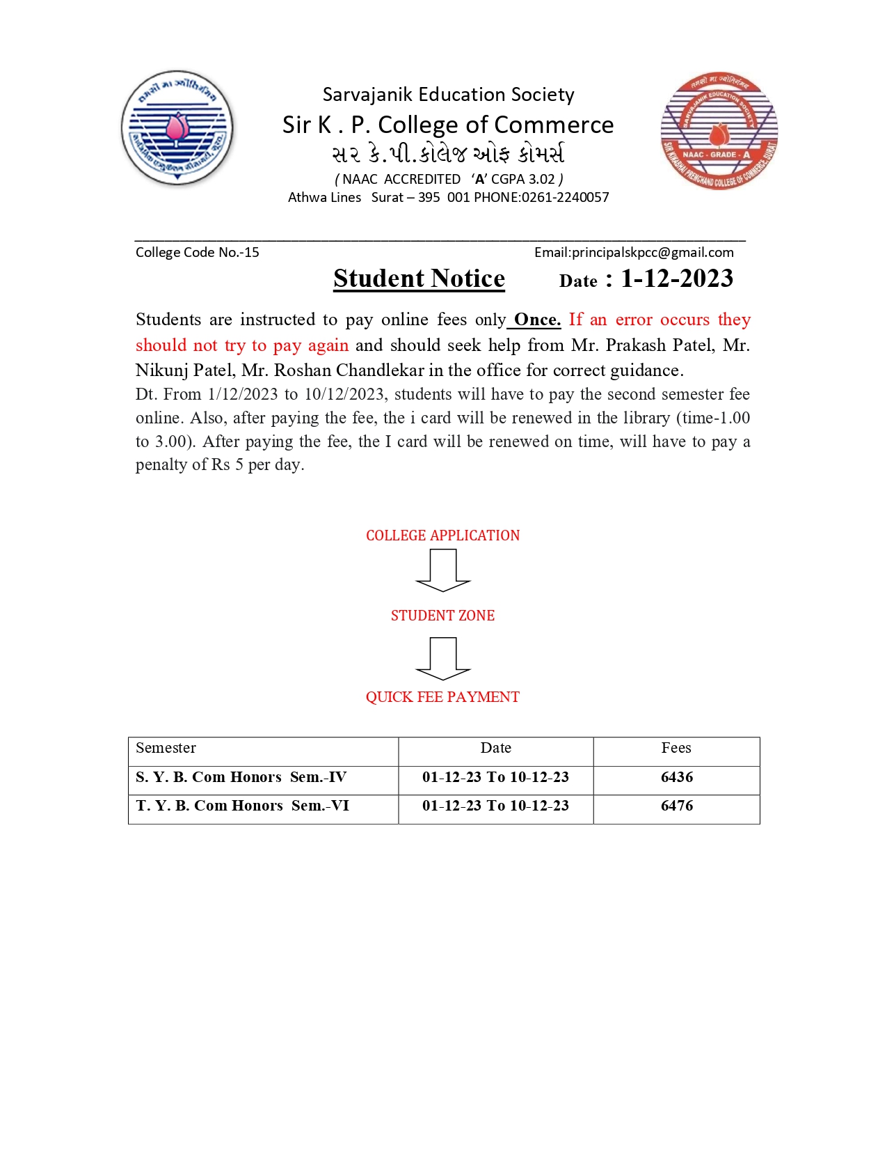 Student Notice (Second Term Fee)