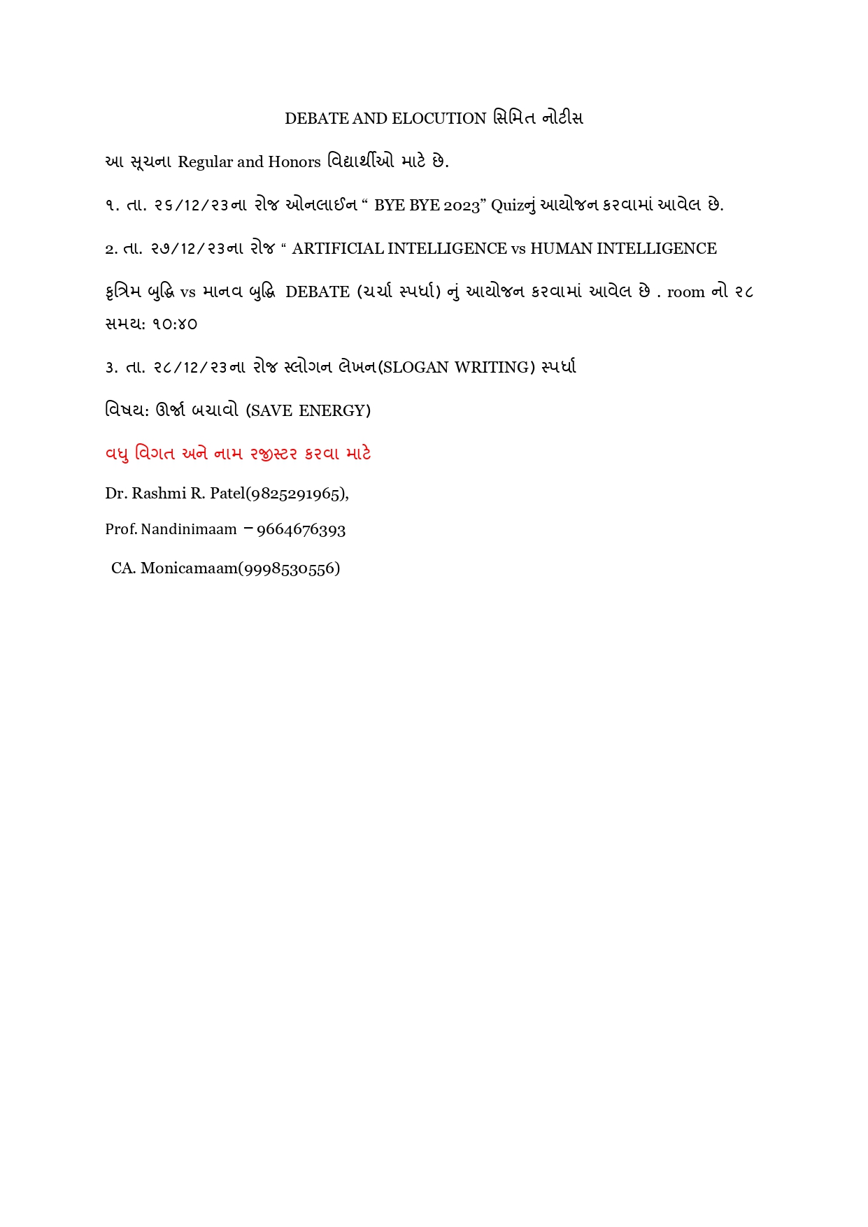 DEBATE AND ELOCUTION સિસિત નોટીિ