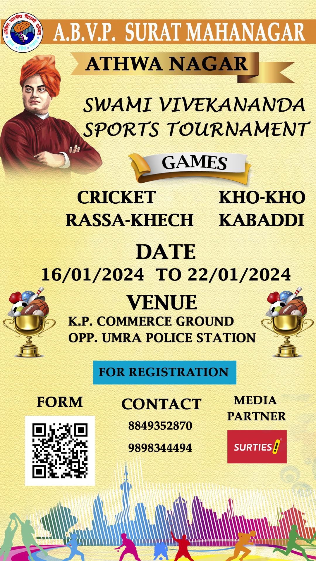 સ્વામી વિવેકાનંદ સ્પોર્ટ્સ ટુર્નામેન્ટ તારીખ 16/01/2024 to 22/01/2024