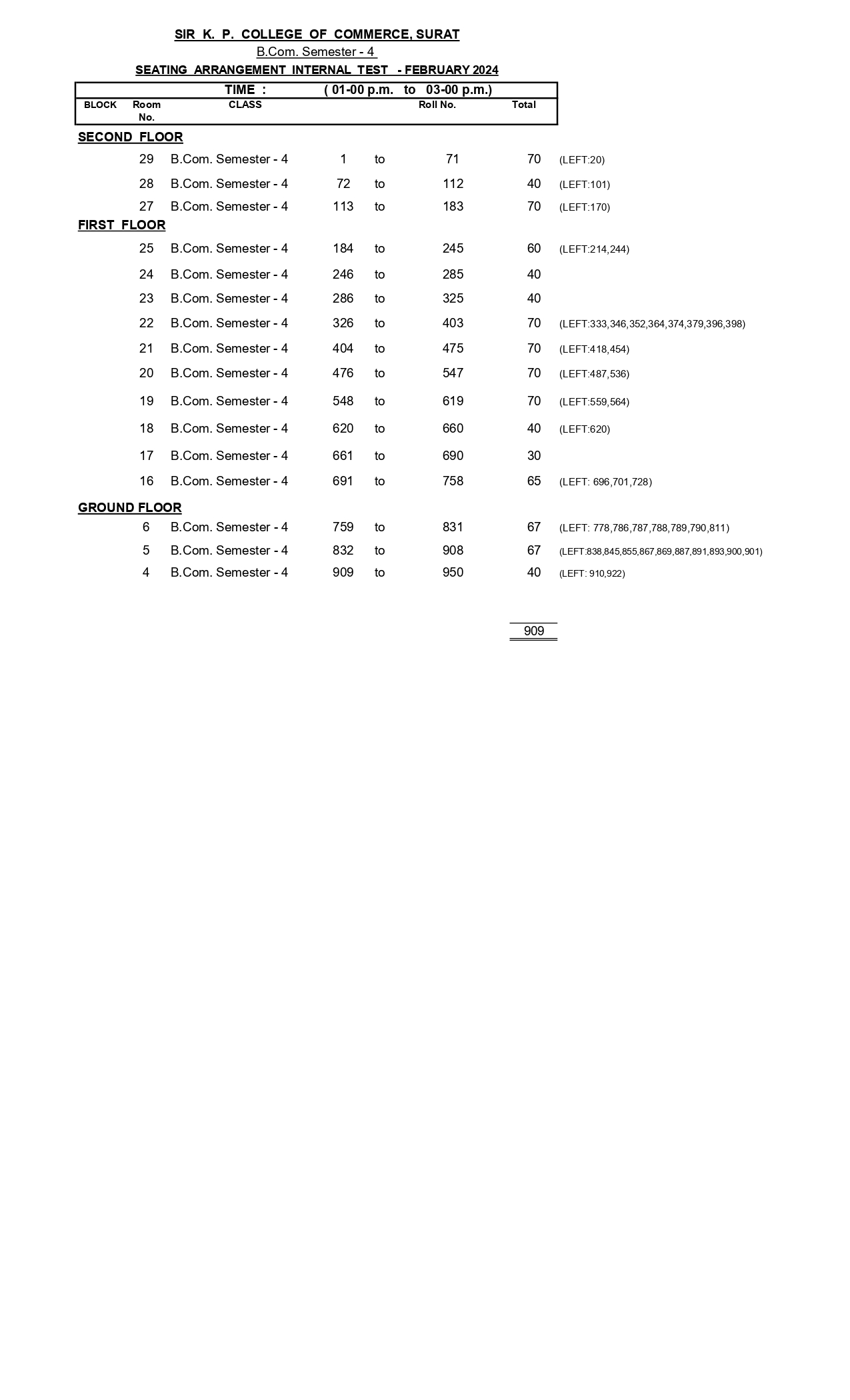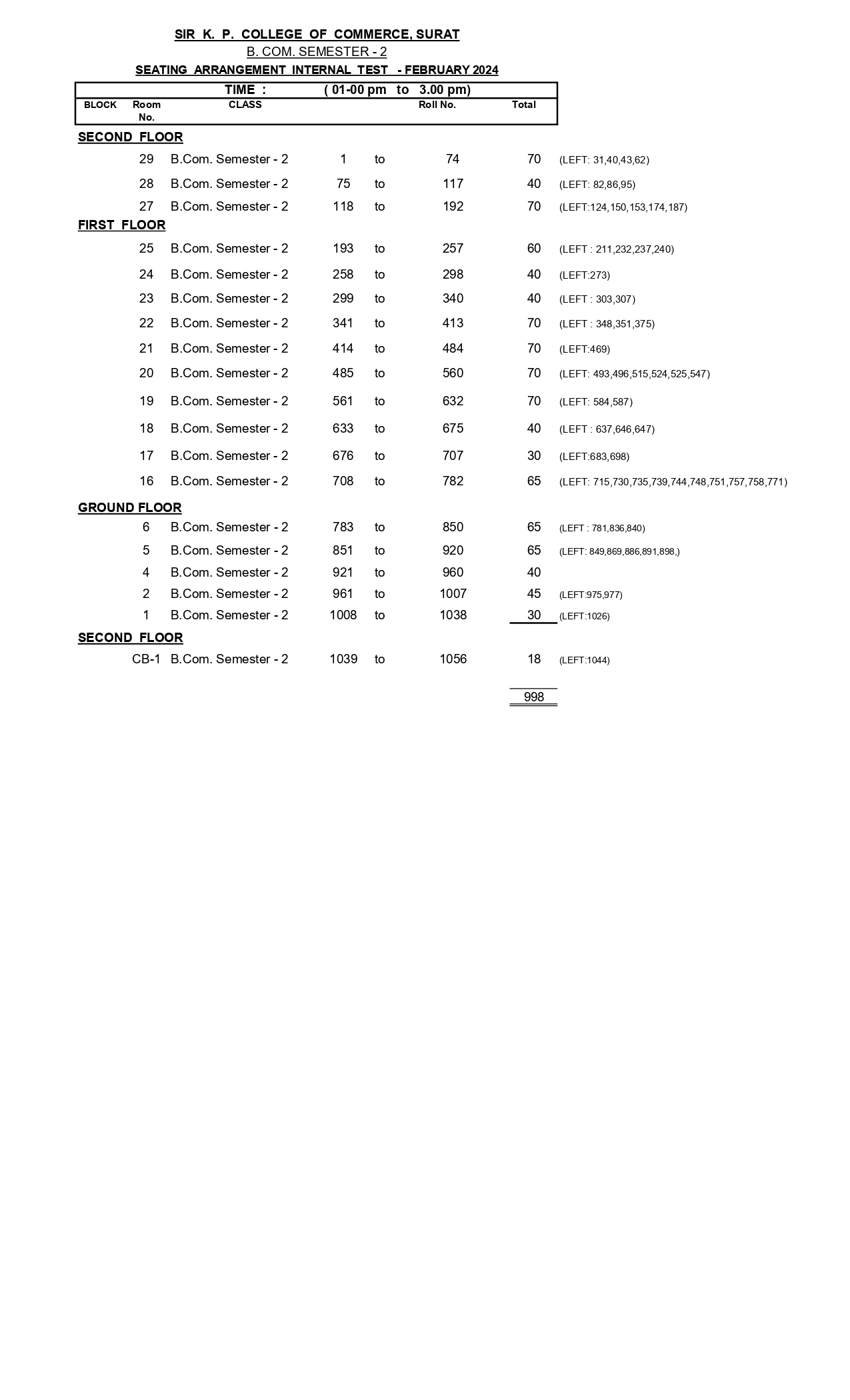 આંતરિક કસોટી ની બેઠક વયવસ્થા ફેબ્રુઆરી ૨૦૨૪ (sitting of internal test is February 2024)