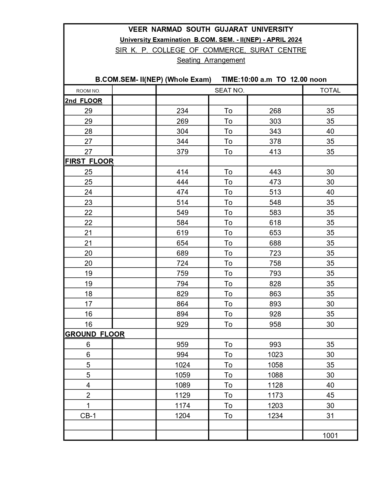 B.COM. SEM-II NEP Seating Arrangement University exam April 2024 (10.00 to 12.00)