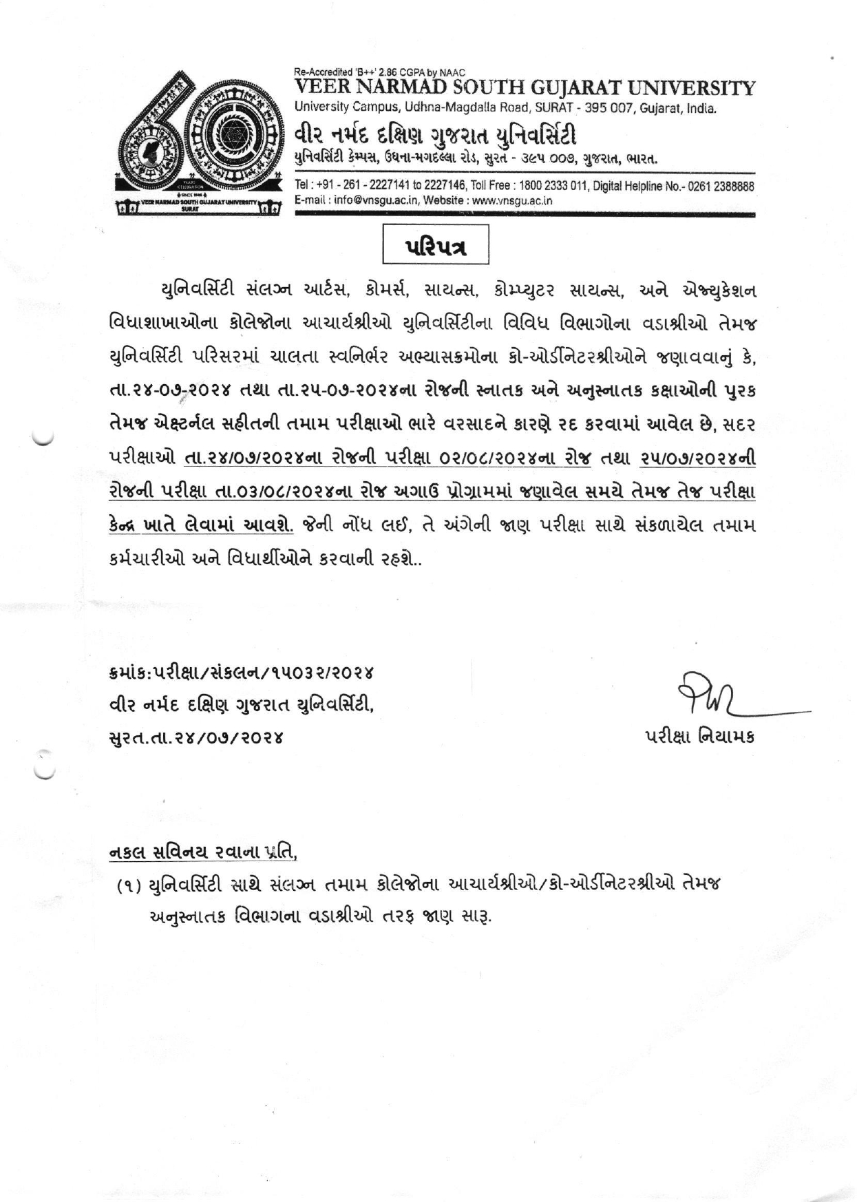 હાલ ચાલતી સ્નાતક અને અનુસ્નાતક પરીક્ષા બાબત.