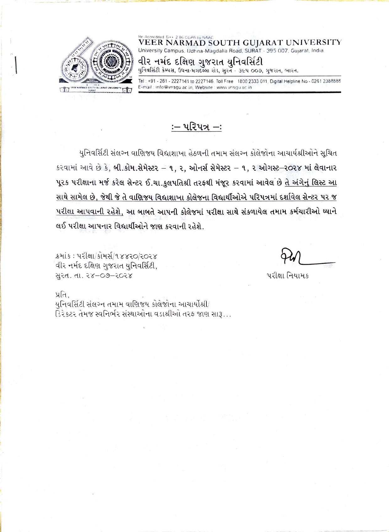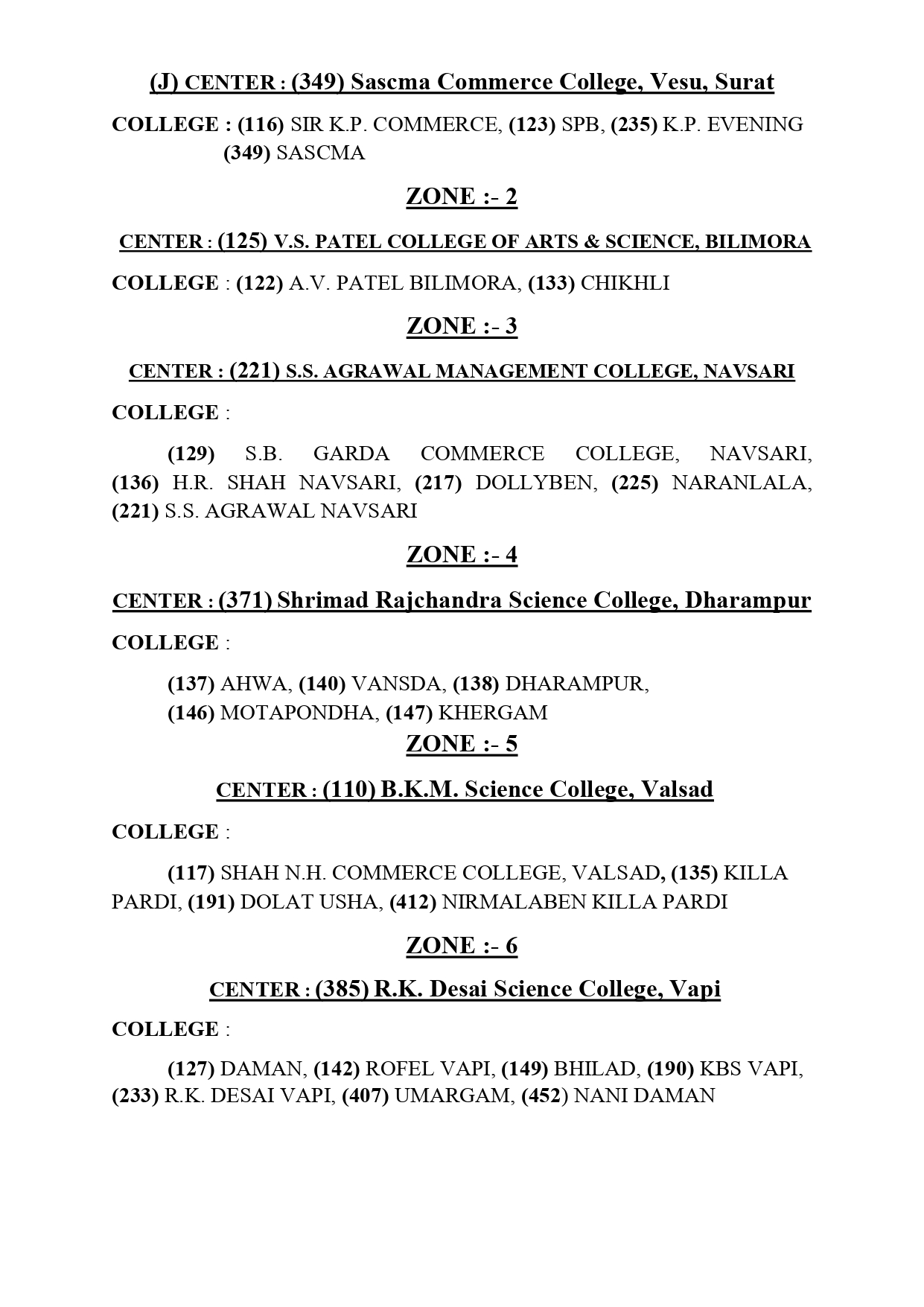 બી.કોમ. સેમ-૧,૨ બી.કોમ. ઓનર્સ સેમ-૧,૨ ના પરીક્ષા કેન્દ્ર