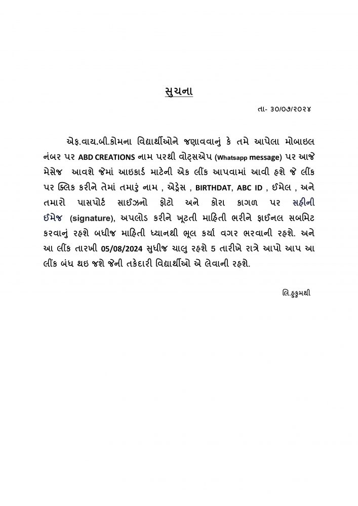 એફ.વાય.બી.કોમના આઇકાર્ડ માટેની નોટીસ 2024-25