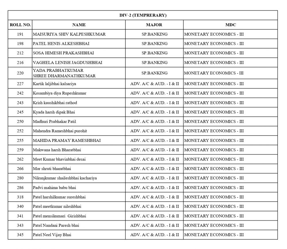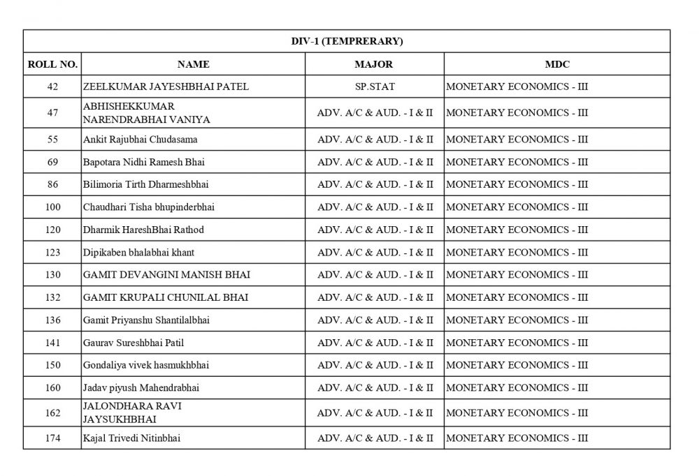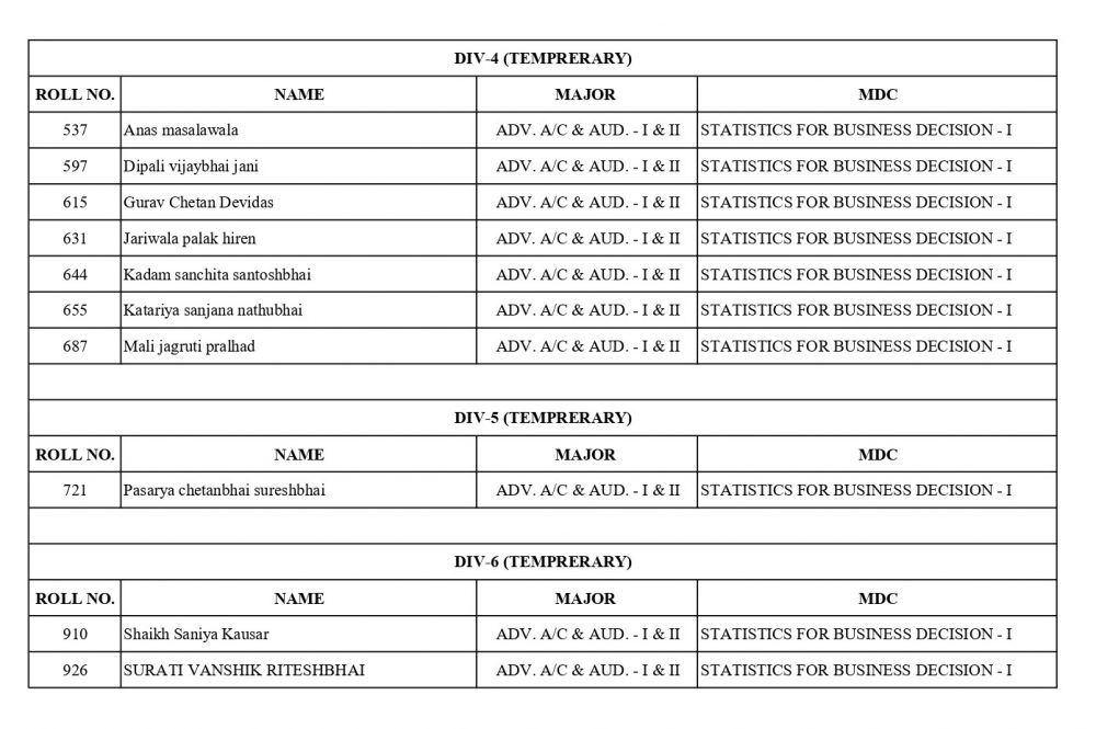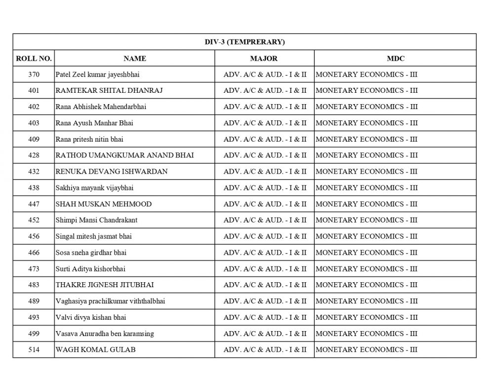 નીચે આપેલ તમામ વિદ્યાર્થીઓએ S.Y.B.COM SEM-3 ના વિષય પસંદગીના (હસ્ત લેખિત)