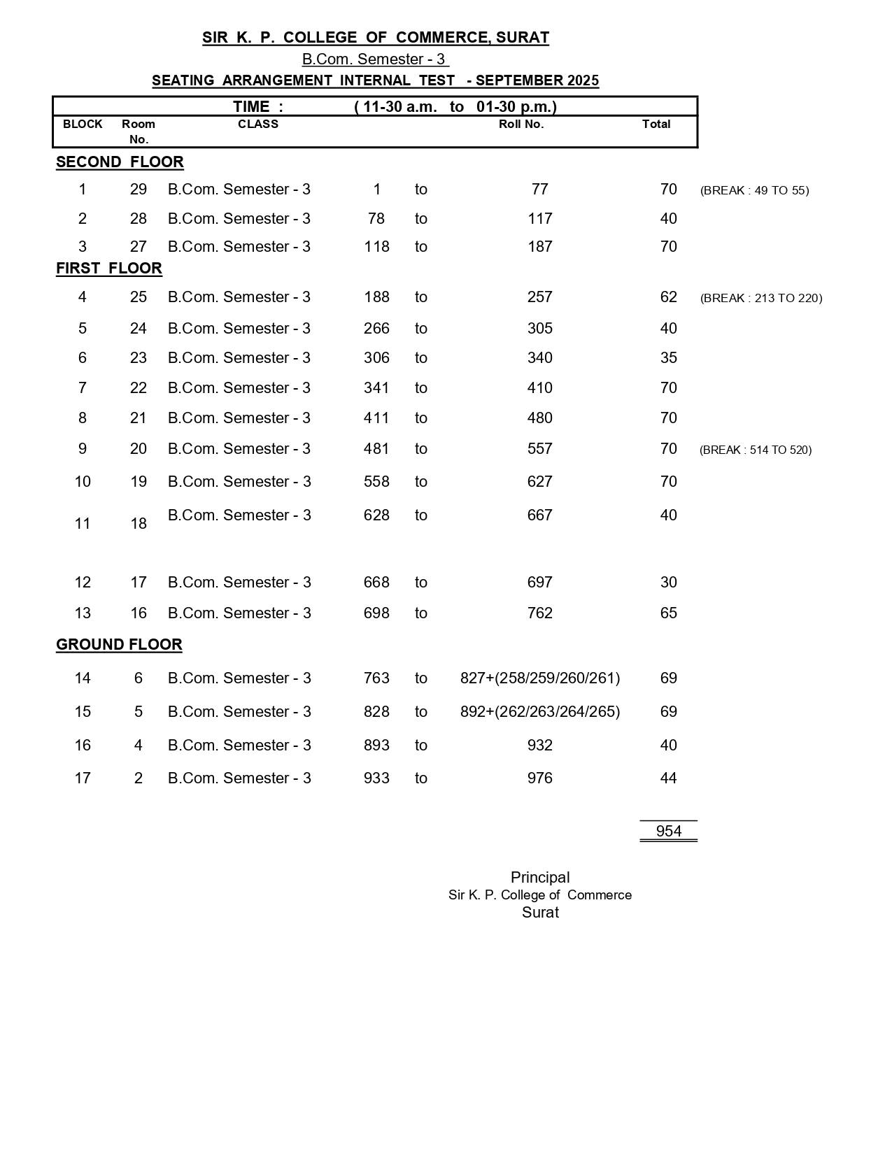 NEW S.Y.B.COM CLASS SEATING FOR INTERNAL EXAM SEPTEMBER-2025
